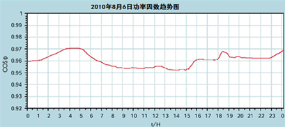 由图5我们可以看到,变电站的无功补偿设备能够跟随无功负荷的变化进行动态跟踪补偿。各项参数表明,系统电压趋于平稳,功率因数保持在 0.96 左右,变电站系统的无功始终处在可控状态,运行效果良好。