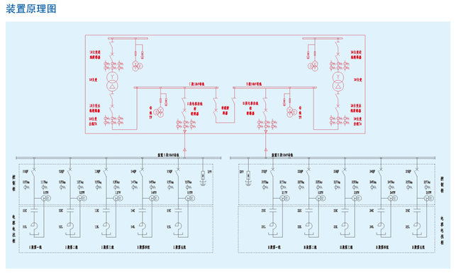 2、保护系统设计:配置ADB2000型电容器组微机保护单元,对每组电容器进行二段过流保护和零序电压保护,保护定值可分别整定。